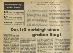 22.12.1957: Germany v Hungary 1-0 (in Hanover) (F)