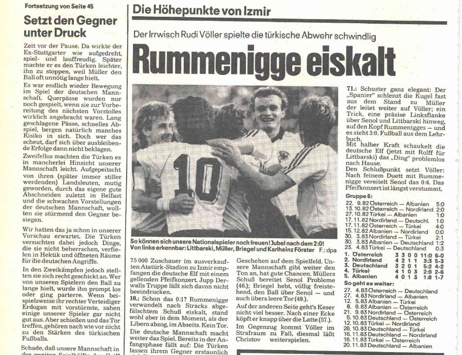 Scorers: 1-0 Rummenigge (4.), 2-0, 3-0 Völler (19., 21).