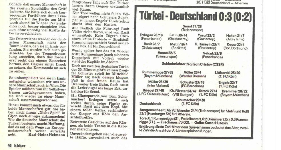26.10.1983: Germany v Turkey 5-1 (in Berlin) (ECQ)